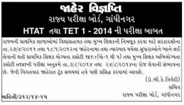 State Examination Board and GSEB has declared dates for the TET-1 2014 Exam and HTAT 2014 Exam TET-1 Exam will be conducted on 03.08.2014 HTAT Exam will be conducted on 24.08.2014 Official News Paper Advertisement : Click Here See here for more information Download Maru Gujarat Android App